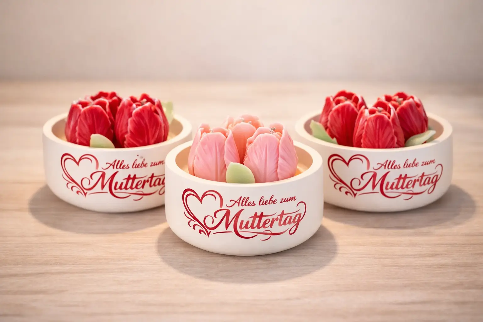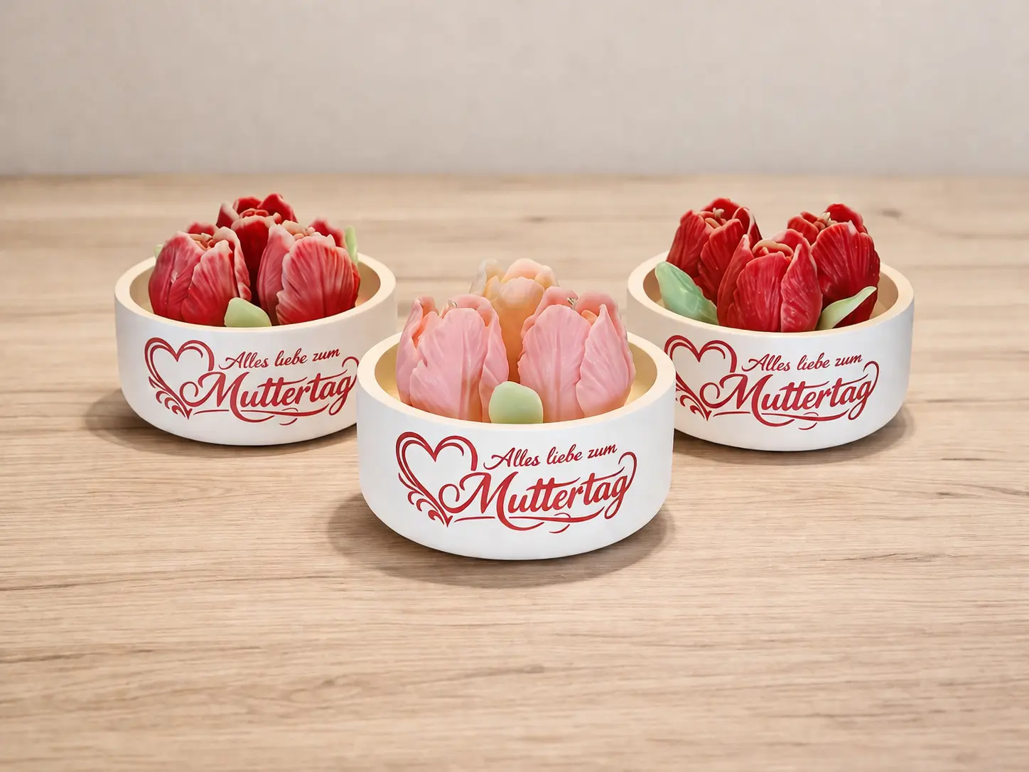 ✔ 3 tulips in each bowl