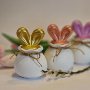 Handmade spring decoration made of ceramic plaster with soft LED lighting. A stylish addition to any home.