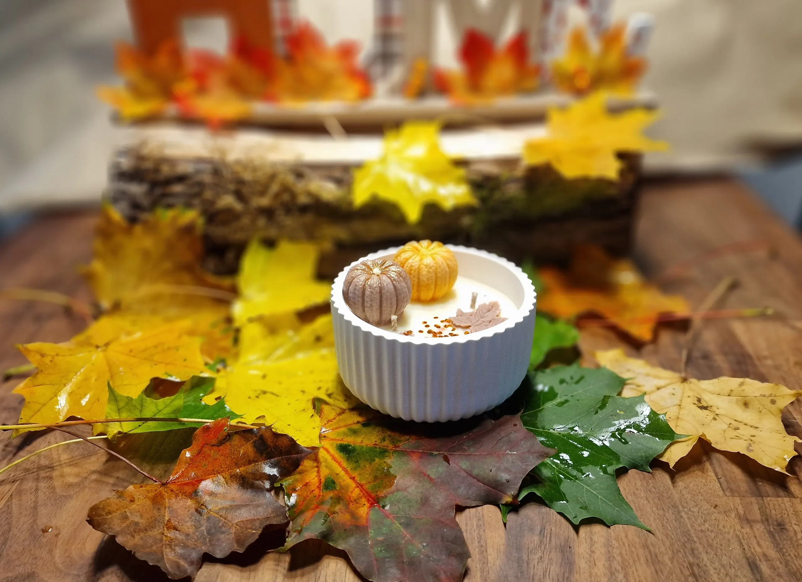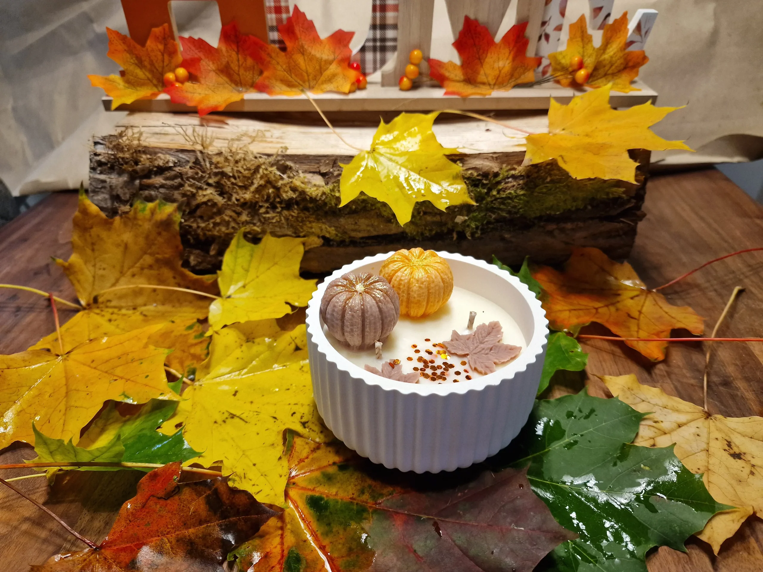Hand-poured from natural soy wax, lovingly decorated with small pumpkins and leaves – a touch of golden autumn for your home.