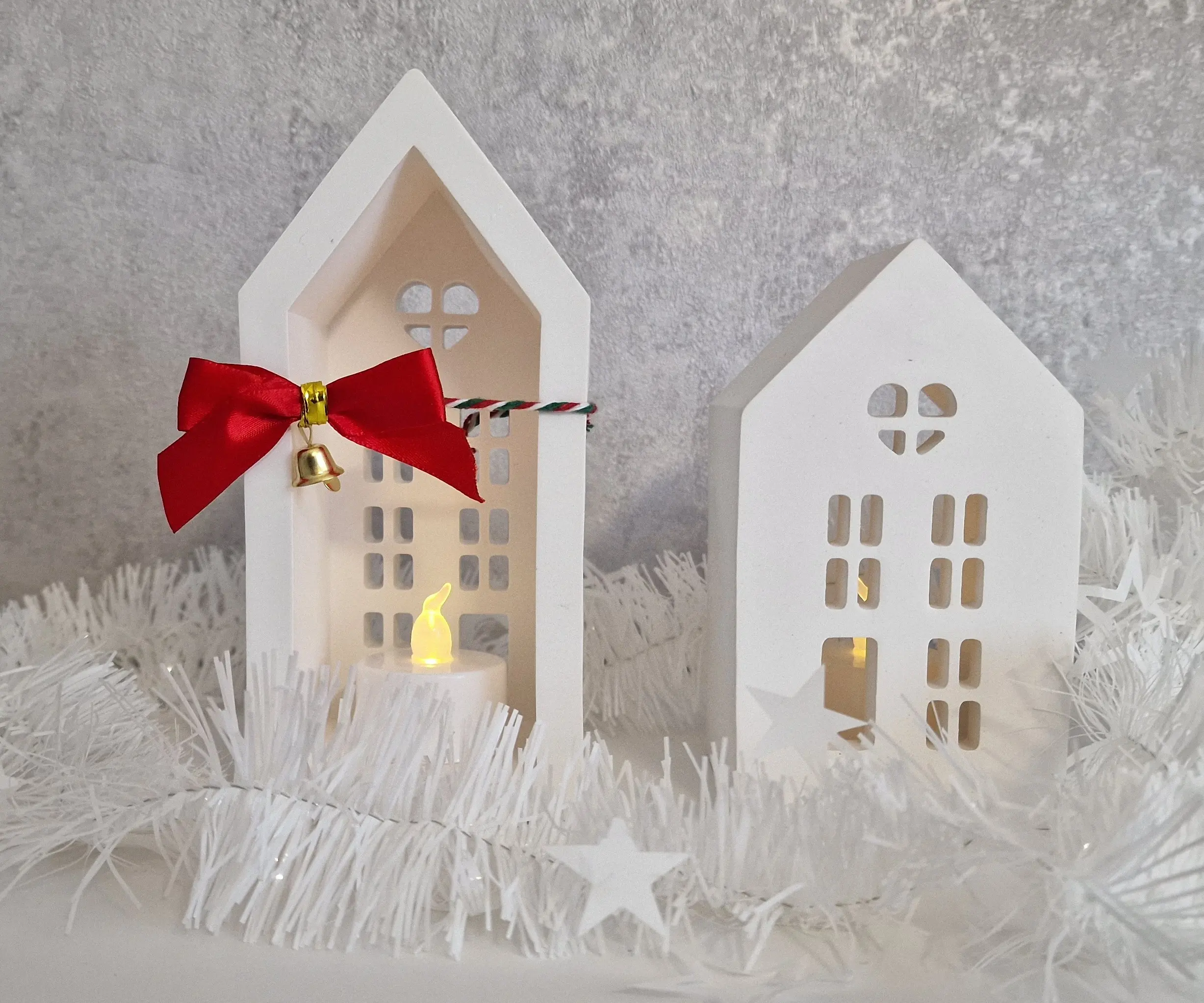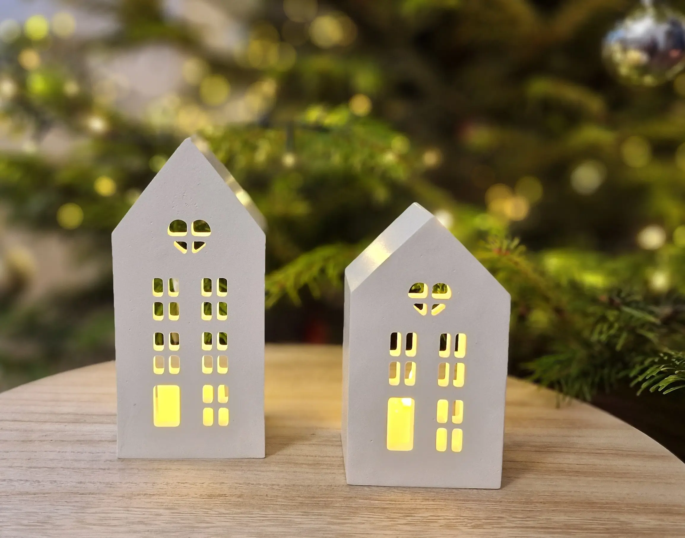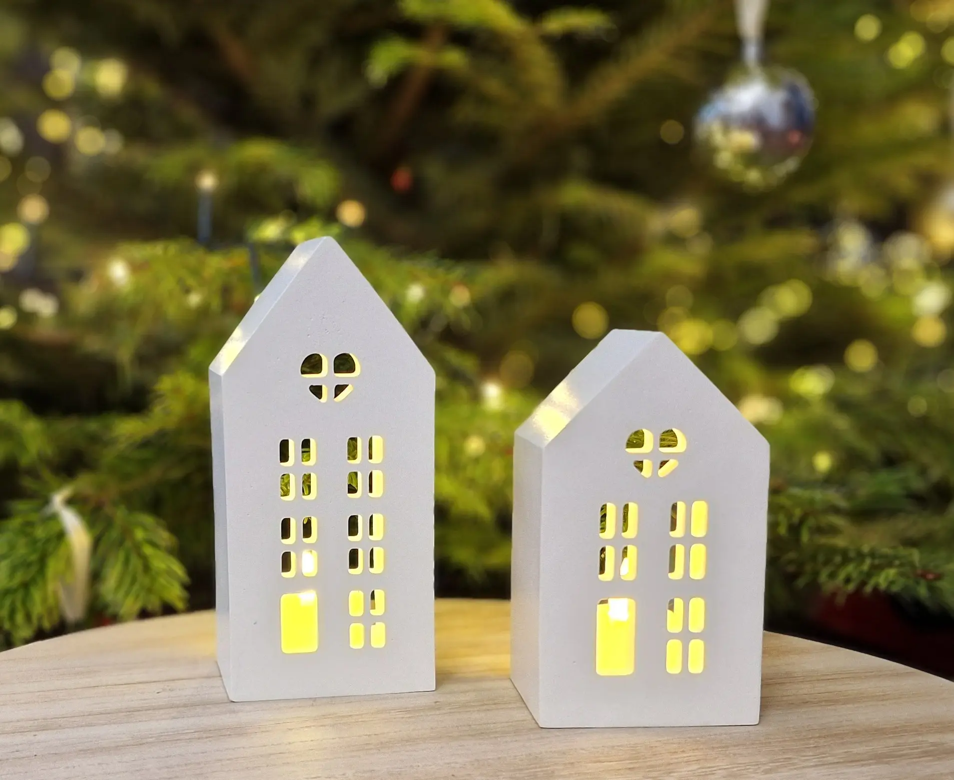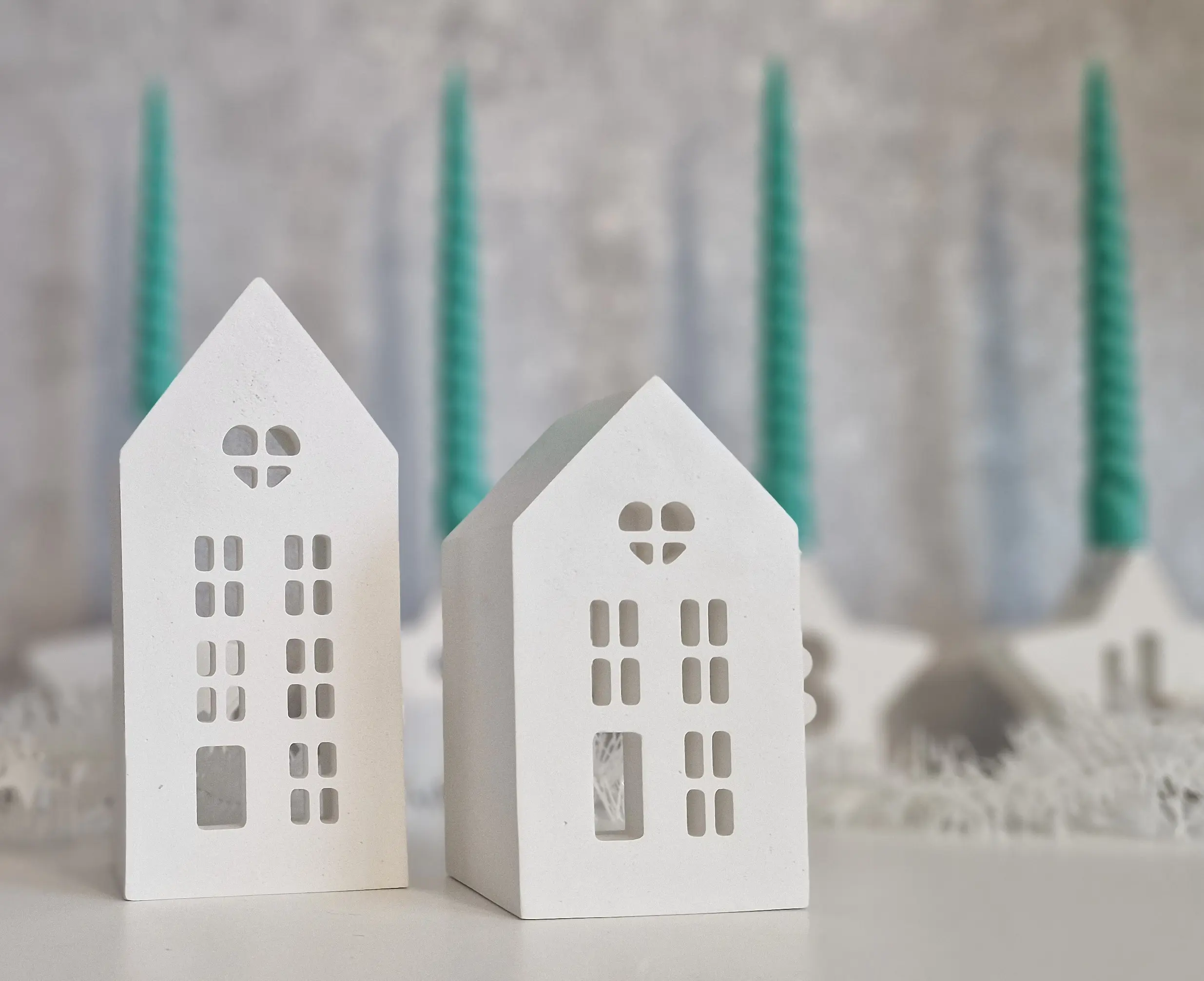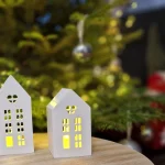 The Winter House Duo – Gift Set with LED Light includes two charming handcrafted gypsum houses with finely cut windows and a soft, matte porcelain-like finish. When illuminated with the included LED tealight, the houses glow warmly, creating a cozy winter atmosphere.