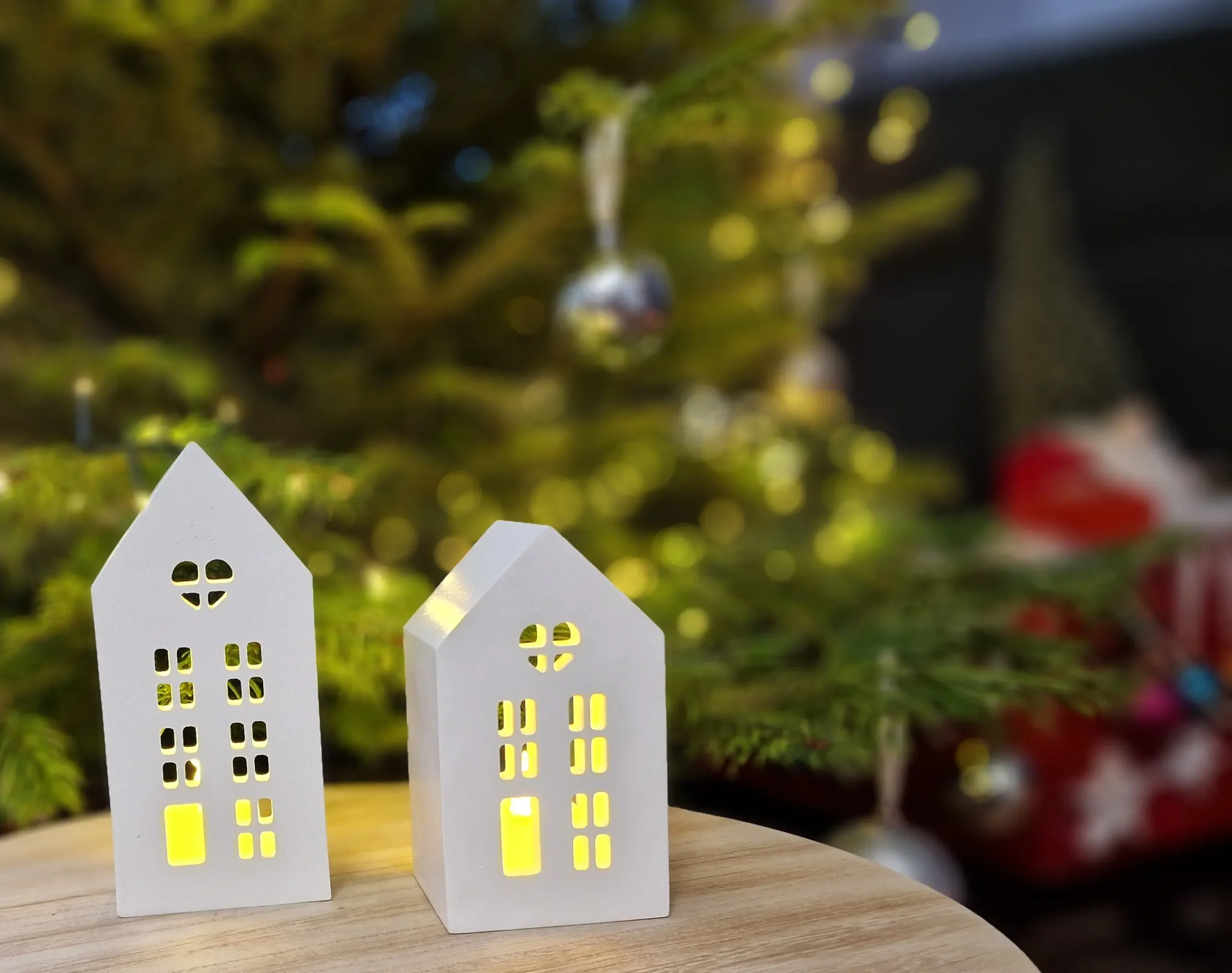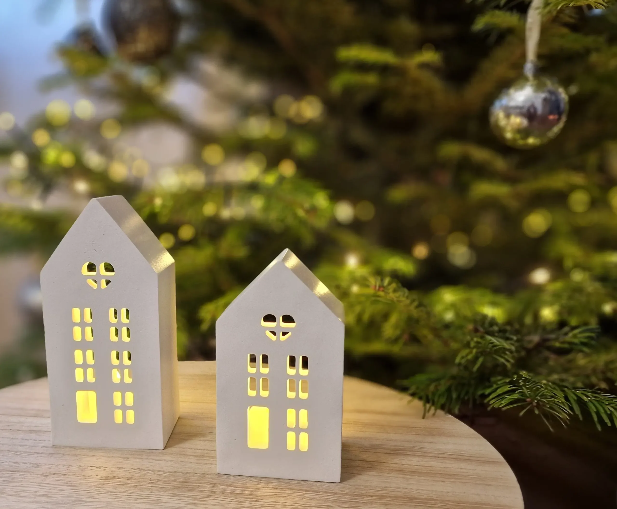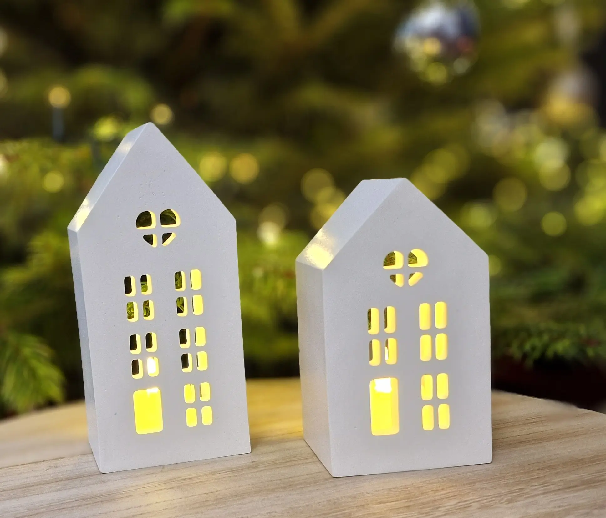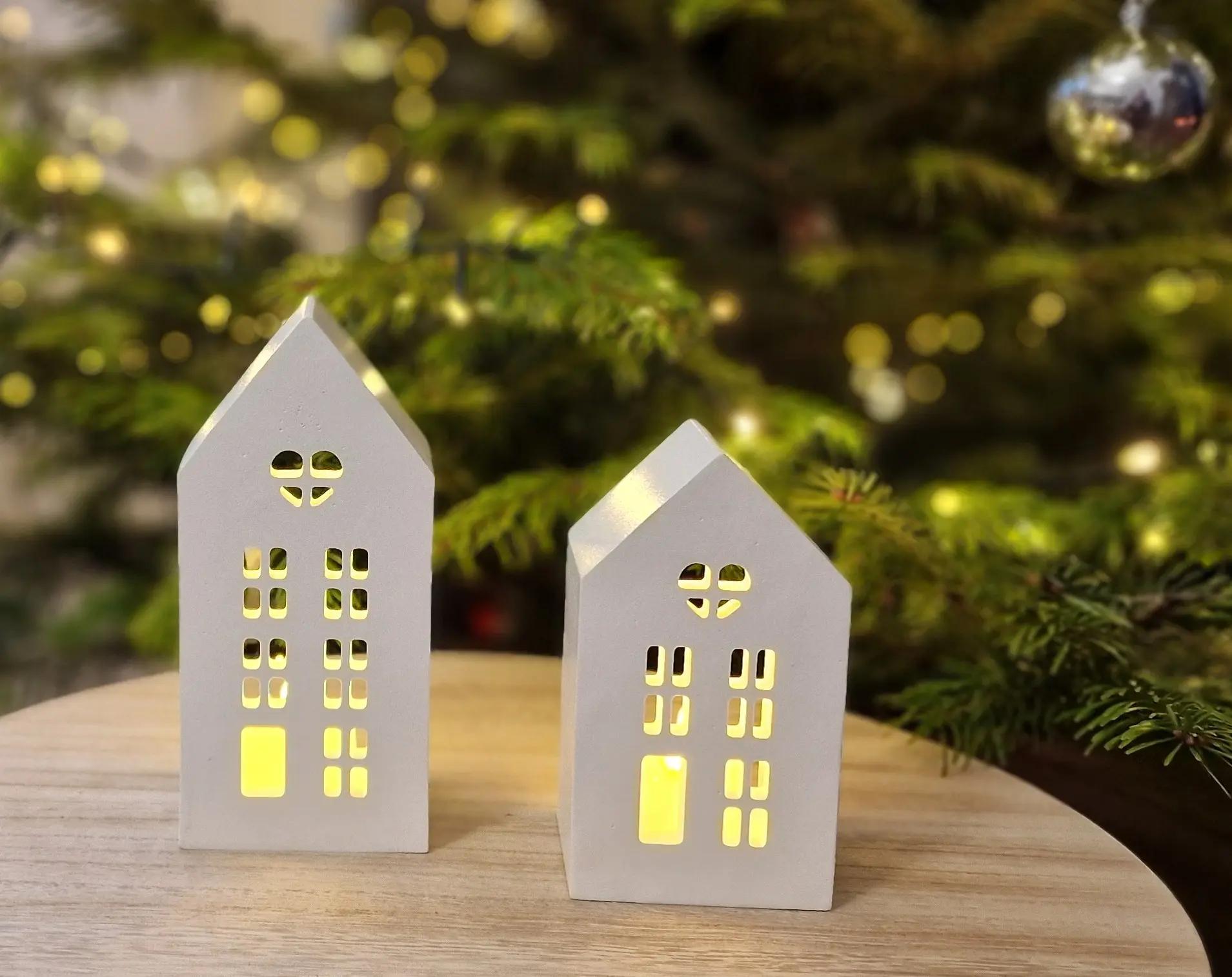 The Winter House Duo – Gift Set with LED Light includes two charming handcrafted gypsum houses with finely cut windows and a soft, matte porcelain-like finish. When illuminated with the included LED tealight, the houses glow warmly, creating a cozy winter atmosphere.