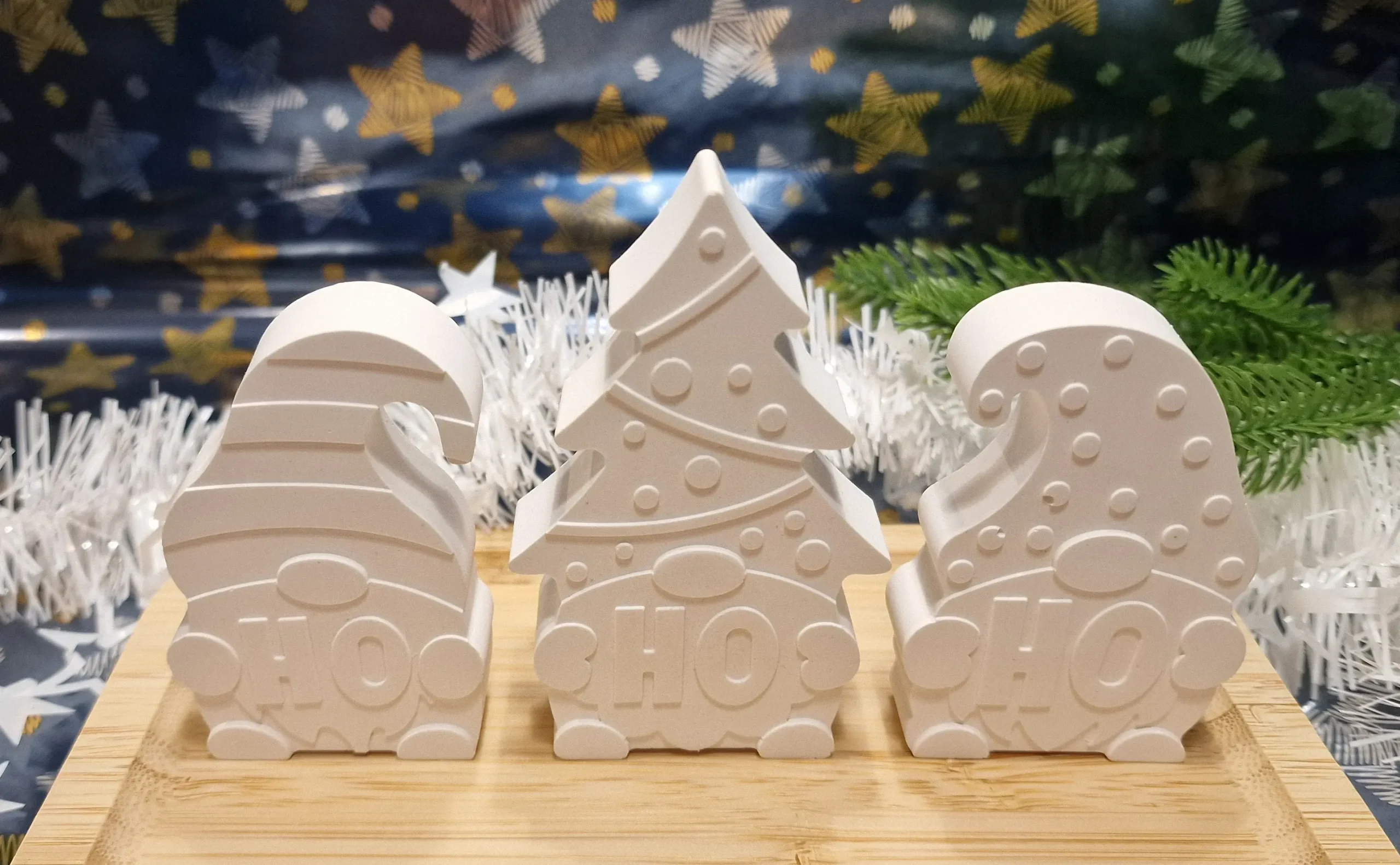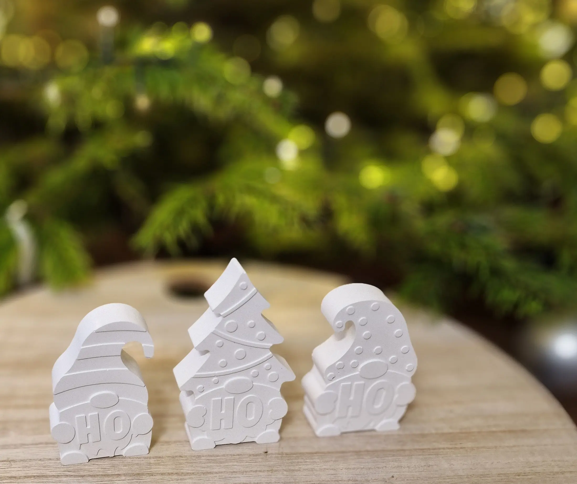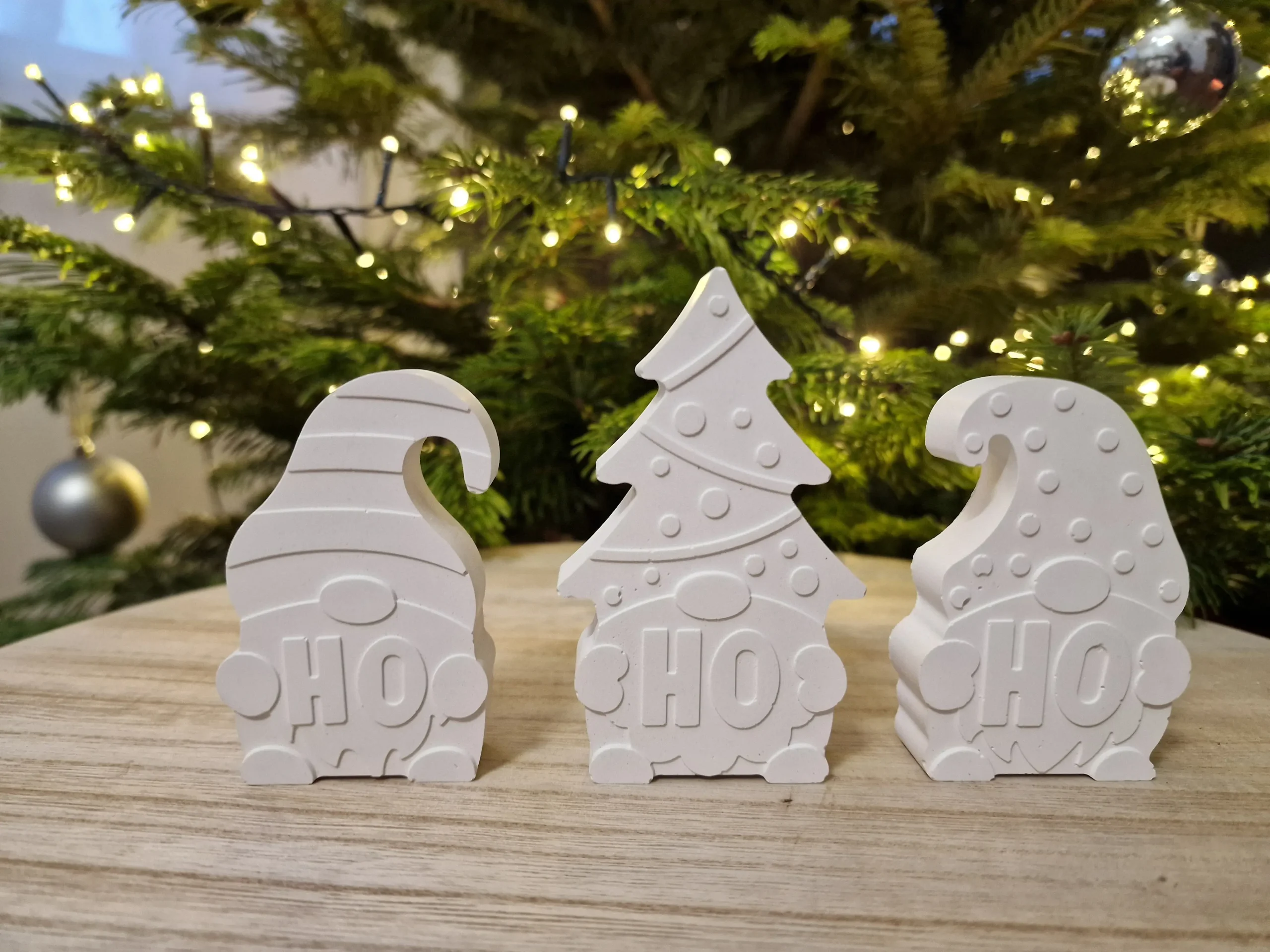 Zestaw „HOHO” – Skrzaty i Choinka to komplet trzech uroczych, ręcznie wykonanych figurek z wysokiej jakości gipsu. W skład zestawu wchodzą dwa skrzaty oraz choinka, każdy element z ozdobnym napisem HO.