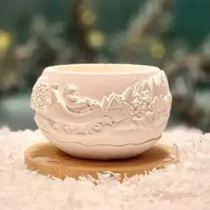 Die Kerzen befinden sich in handgefertigten Schalen aus Keramikgips, lackiert mit umweltfreundlichem Acryllack in den Farben: