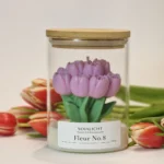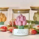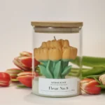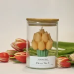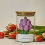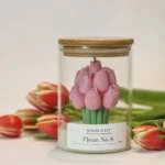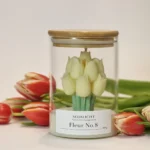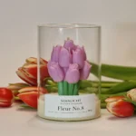 Fleur No.8 – Tulip Edition ist eine exklusive Dekokerze, inspiriert von der natürlichen Schönheit frischer Tulpen. Das detailreiche Tulpenbouquet ist in einem minimalistischen Glasbehälter mit edlem Holzdeckel eingefasst.