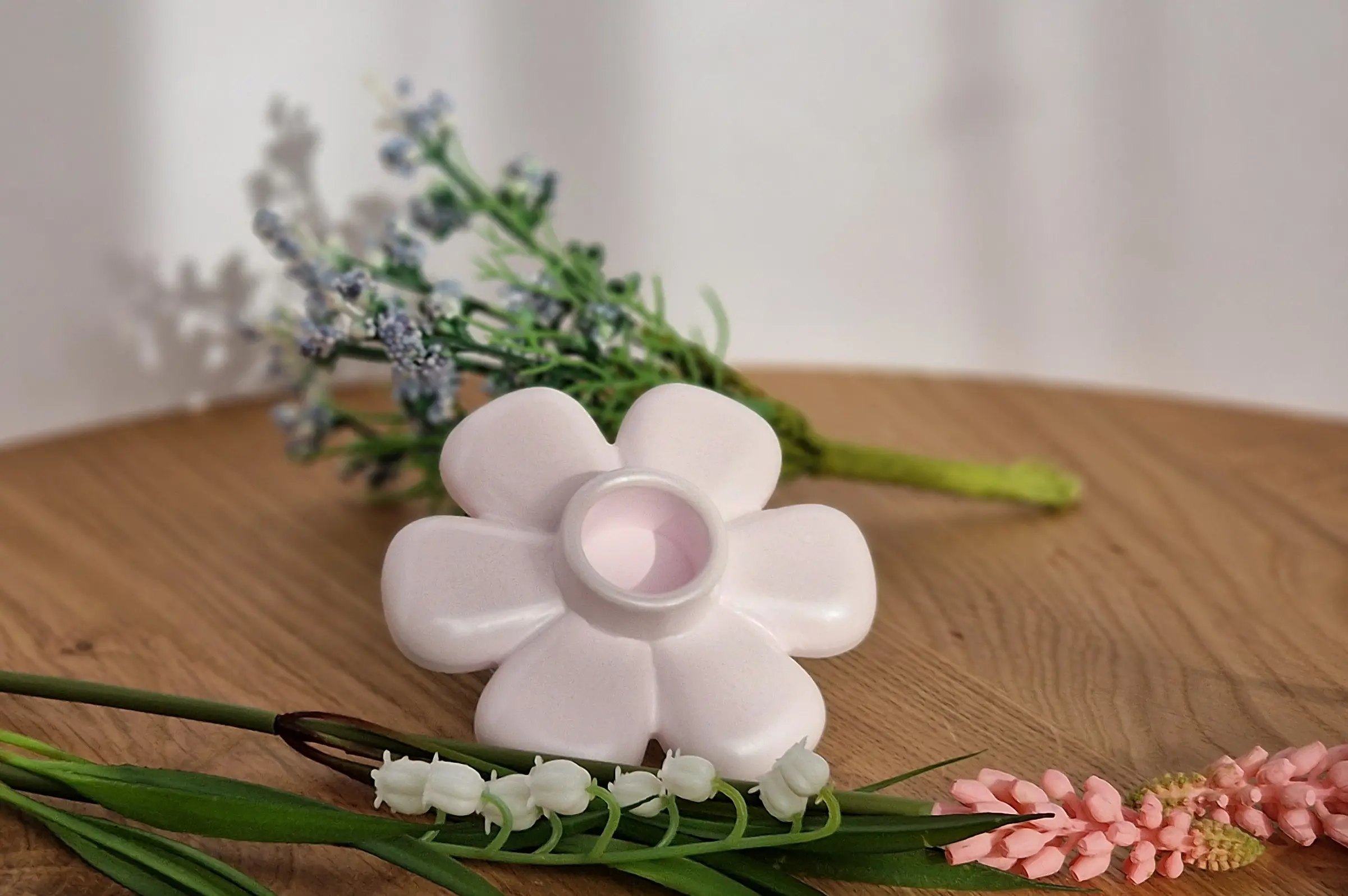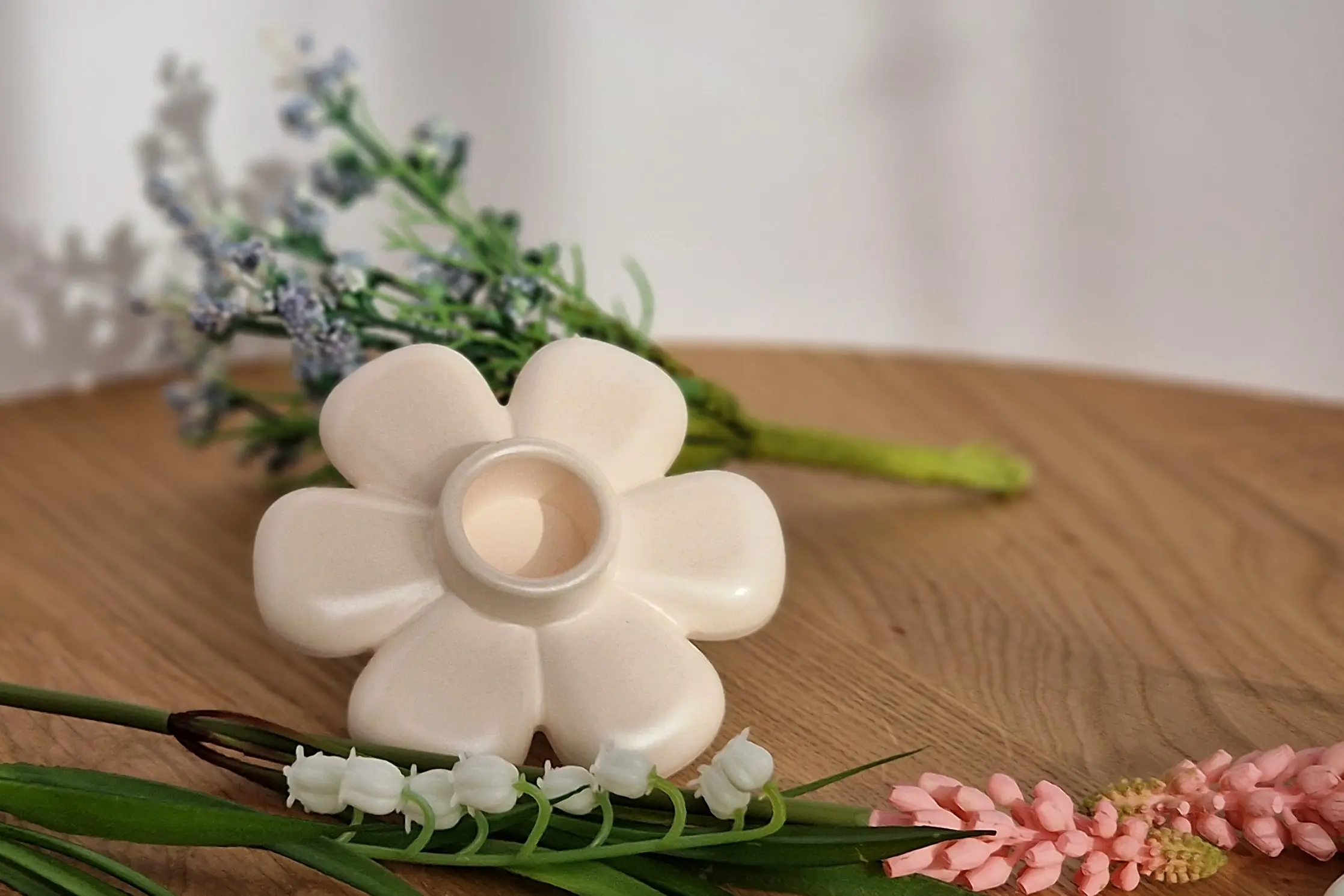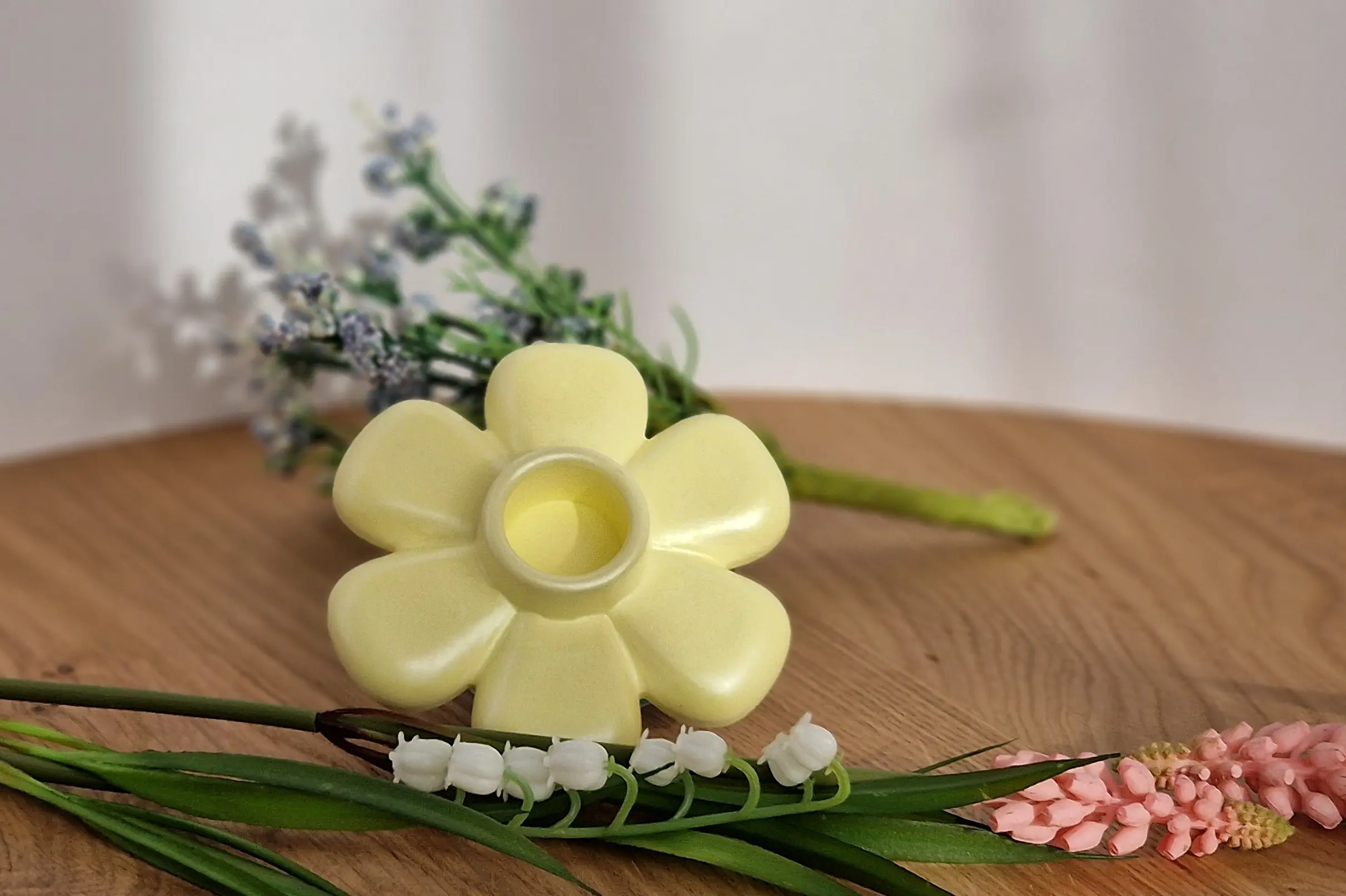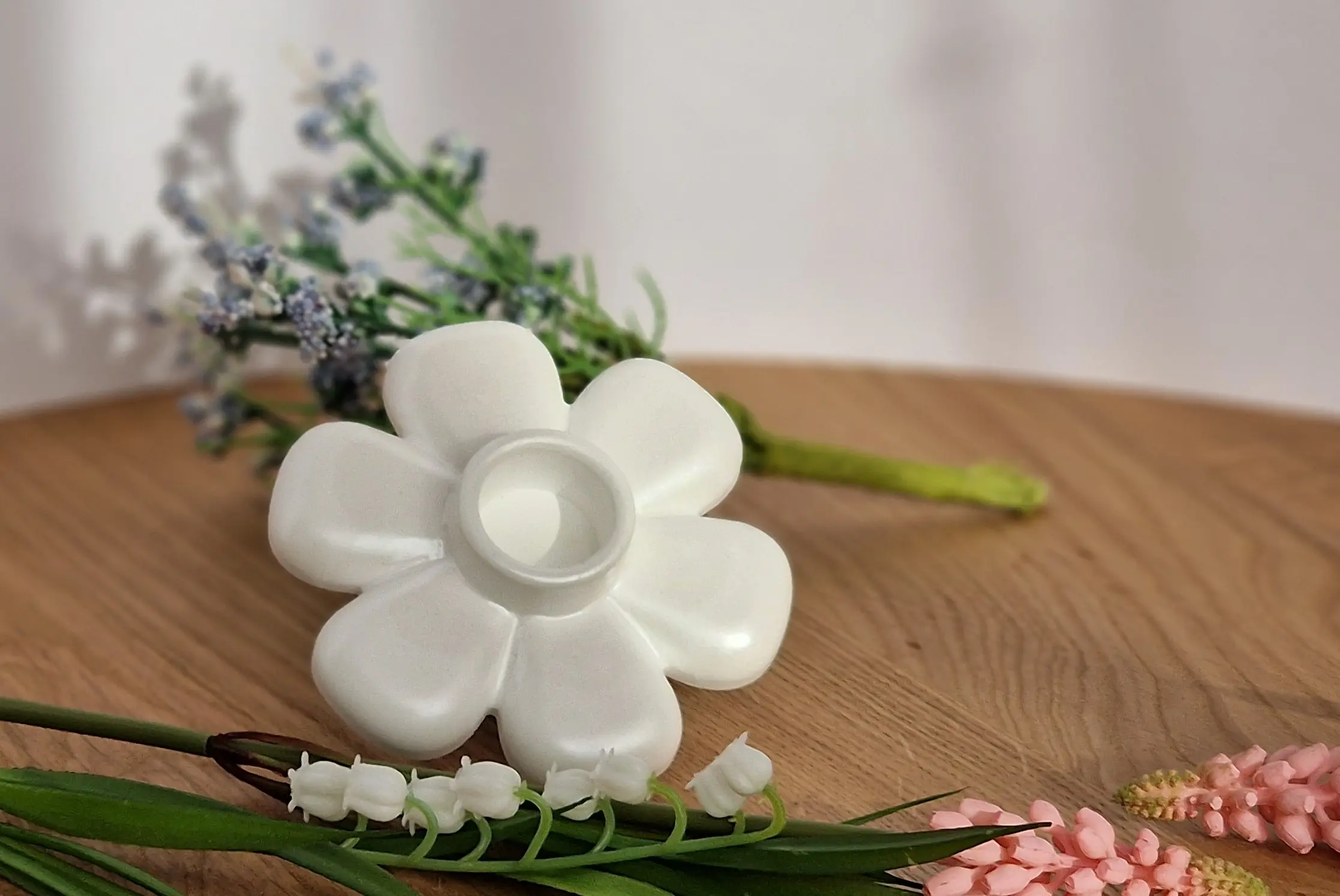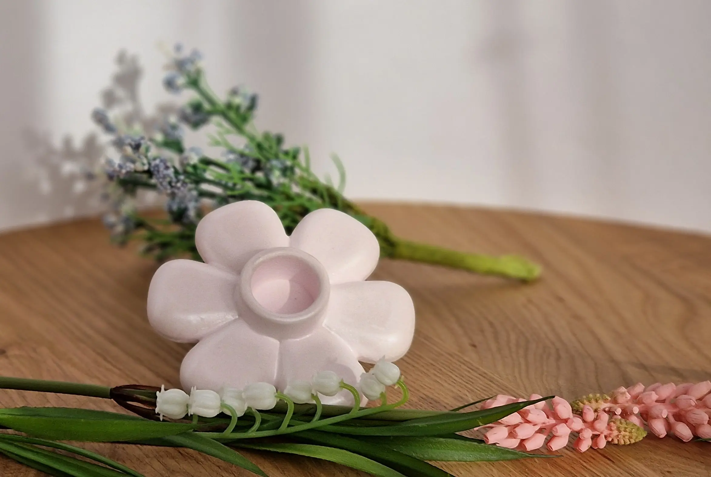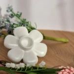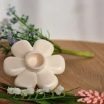 Dieser handgefertigte Kerzenhalter in Blumenform bringt eine warme und natürliche Atmosphäre in dein Zuhause.