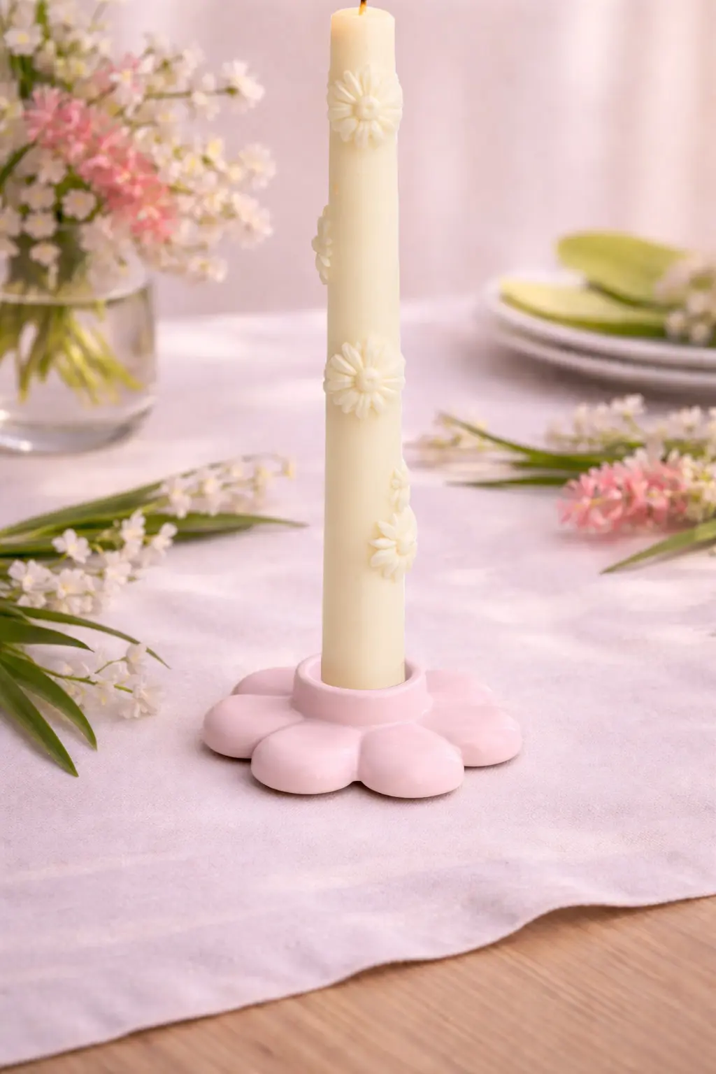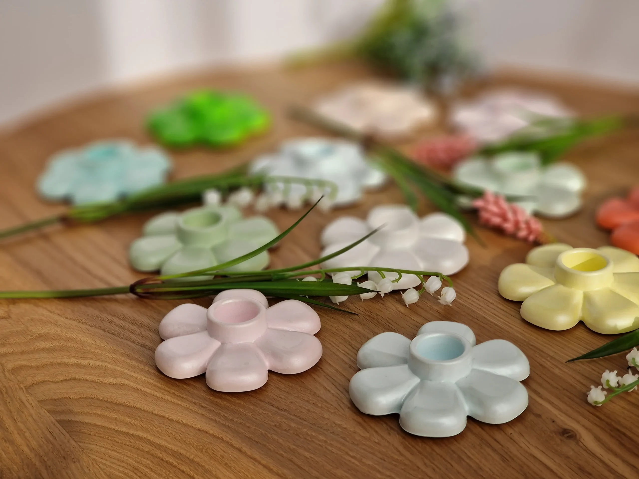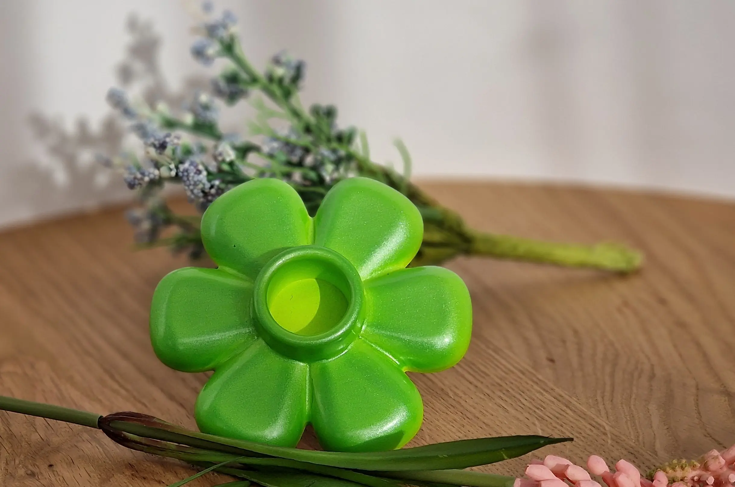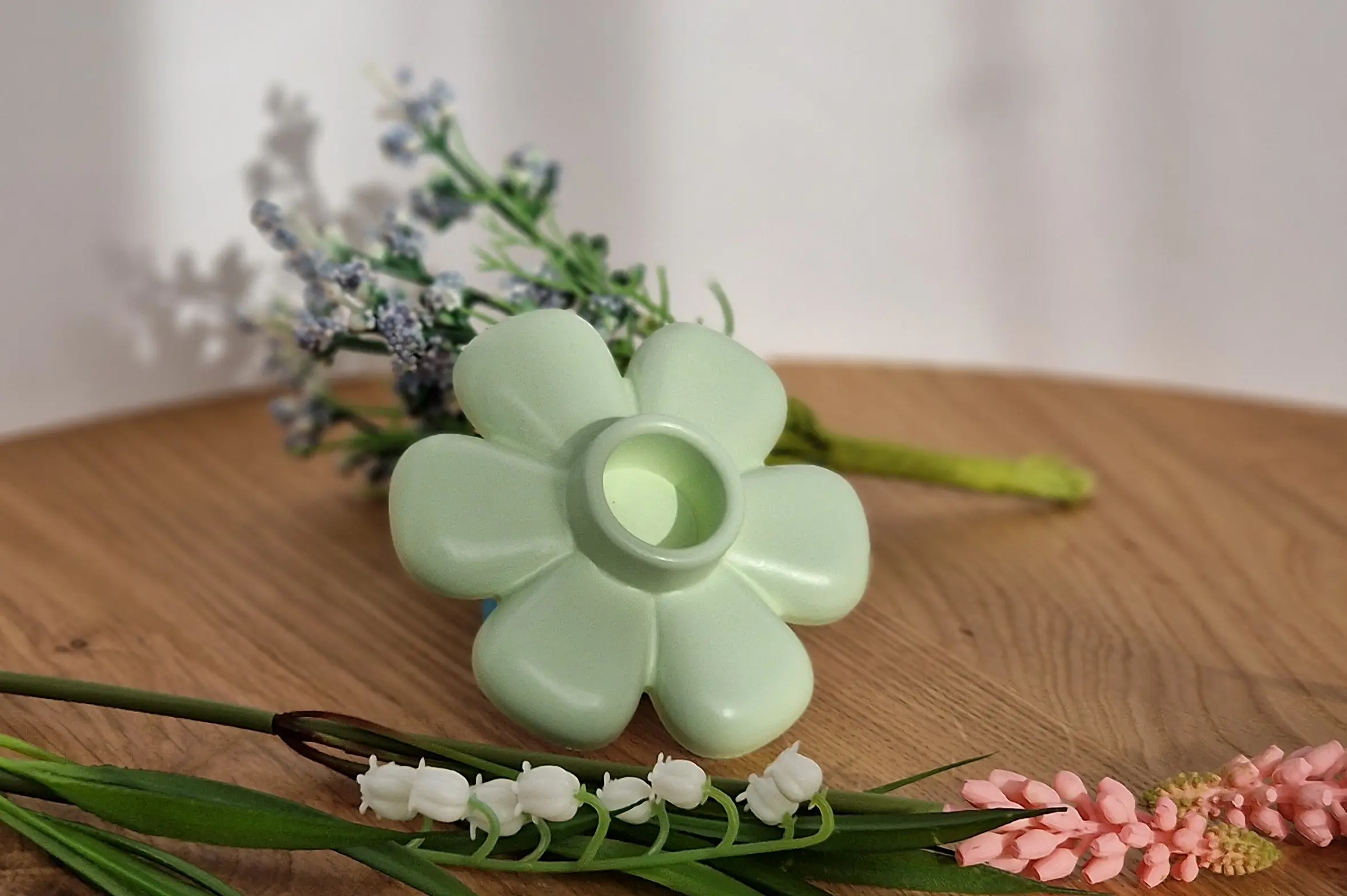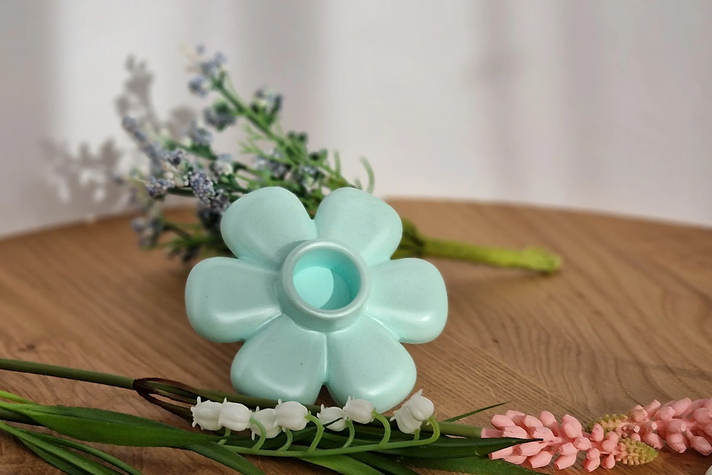 Dieser handgefertigte Kerzenhalter in Blumenform bringt eine warme und natürliche Atmosphäre in dein Zuhause.