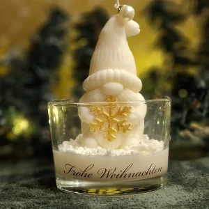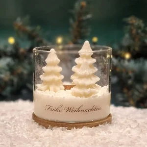 Die Kerze befindet sich in einem eleganten Glas mit Deckel. Die Oberfläche ist mit einem dekorativen Wachsornament in Form einer Honigwabe verziert, was den Charakter des Duftes stilvoll unterstreicht.