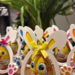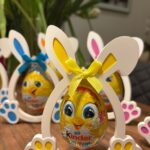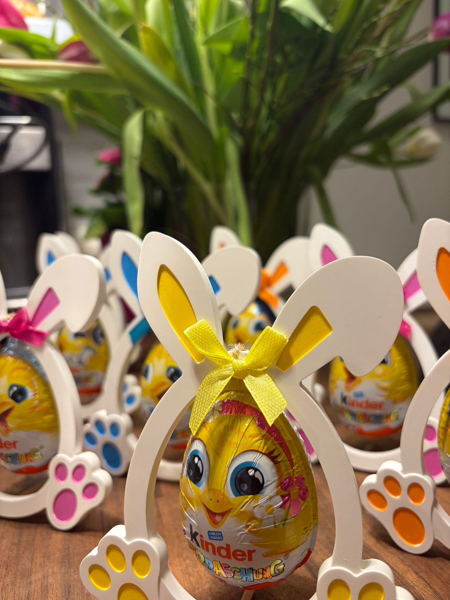 Dieser liebevoll gestaltete Osteraufsteller im niedlichen Hasen-Design ist eine perfekte Kombination aus Dekoration und süßer Überraschung.