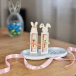 Dieses liebevoll gestaltete Set kombiniert eine dekorative Hasenform mit einer leckeren Schokolade – ein fertiges Geschenk ohne zusätzliches Verpacken.