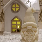 Schneeflöckchen ist eine liebevoll handgegossene Sojakerze in Form eines kleinen Winterwichtels, der eine Schneeflocke in den Händen hält. Jede Kerze wird sorgfältig aus 100 % natürlichem Sojawachs gefertigt – nachhaltig, vegan und schadstofffrei.