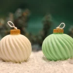 Handgefertigte Sojakerze in Form einer spiralförmigen Weihnachtskugel. Minimalistisch, elegant und perfekt als Geschenk oder Winterdeko.