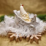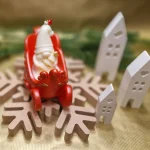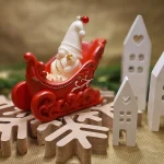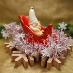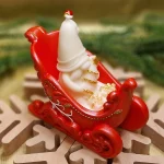 Handgemachte Sojakerze Weihnachtswichtel im Schlitten. Festliche Dekoration in Rot, Silber oder Weiß mit goldenen Details. Natürlich, vegan und ideal als Weihnachtsgeschenk.
